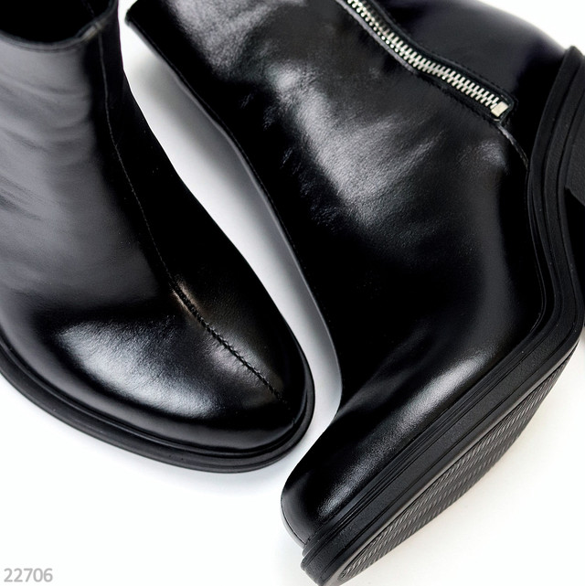 Люксові чорні ботильйони натуральна масляна шкіра на середньому підборі