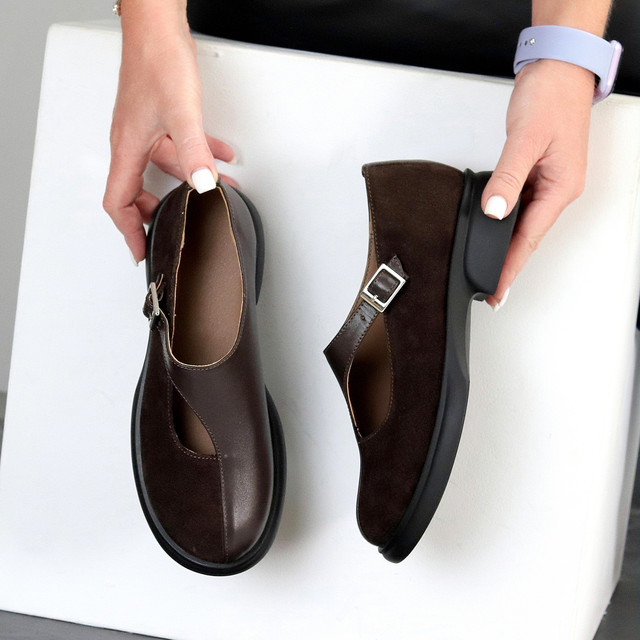Дизайнерські шоколадні туфлі натуральна шкіра + замша низький хід
