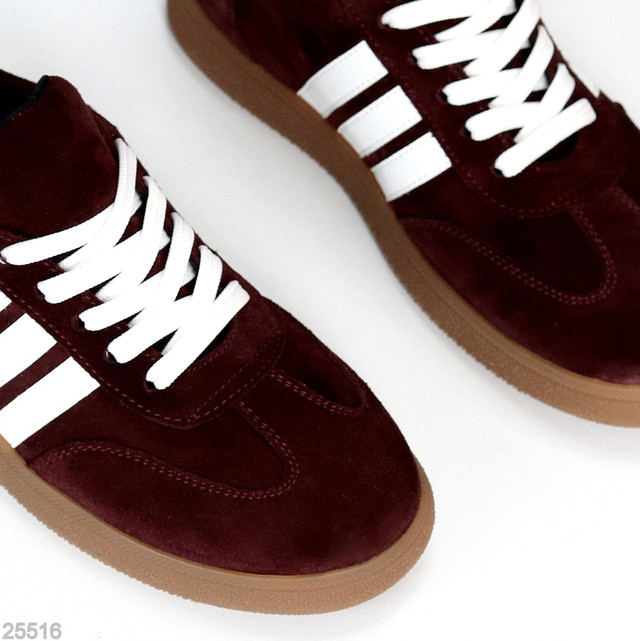 Бордові кросівки з білими вставками класичний спортивний дизайн