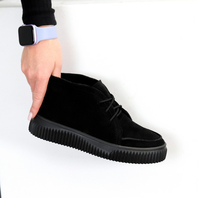 Замшеві чорні черевики дезерти у стилі casual на потовщеній підошві