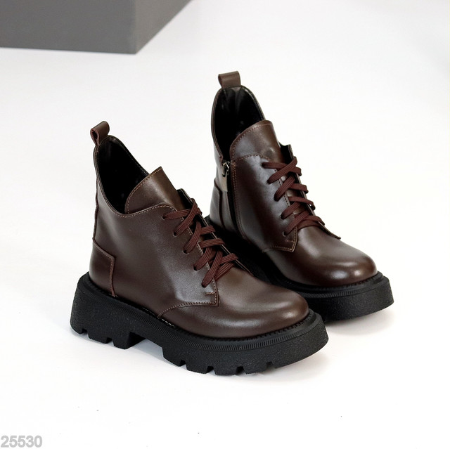 Круті асиметричні черевики на флісі натуральна шкіра колір Шоколад