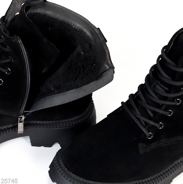 Базові чорні зимові черевики берці натуральна замша, блискавка + шнурівка