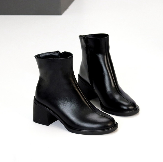 Класичні лаконічні чорні шкіряні ботильйони на середньому підборі