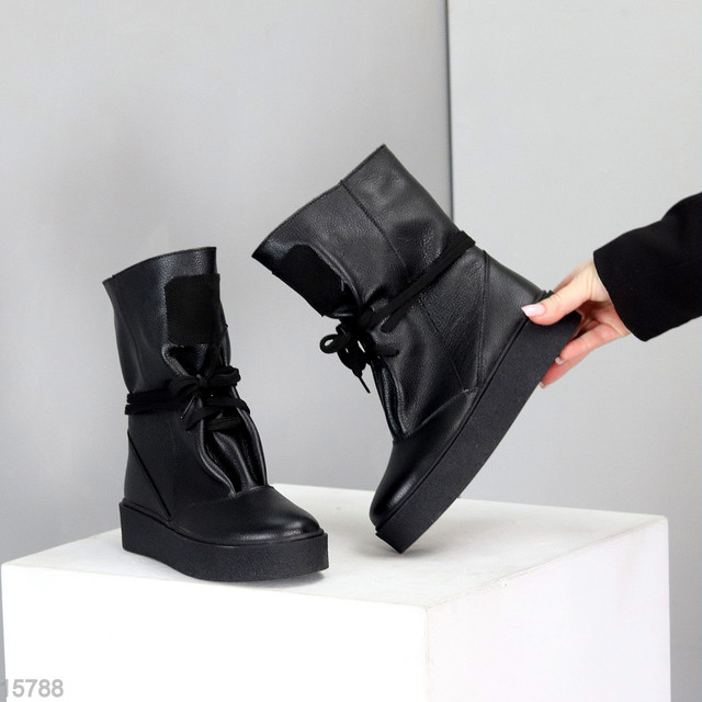 Дизайнерські зимові чорні високі черевики натуральна шкіра флотар