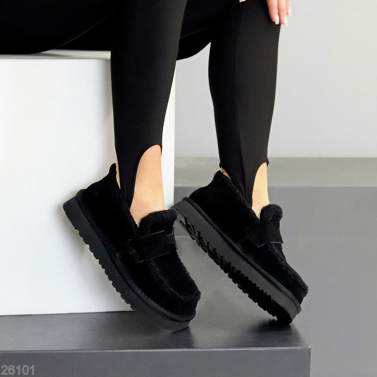 Теплі чорні замшеві ультранизкі уггі автоледі з натуральним хутром